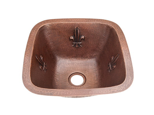 Fregadero de barra cuadrado de cobre Diseño de flor de lis