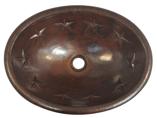 Lavabo de baño ovalado de cobre con diseño de estrellas