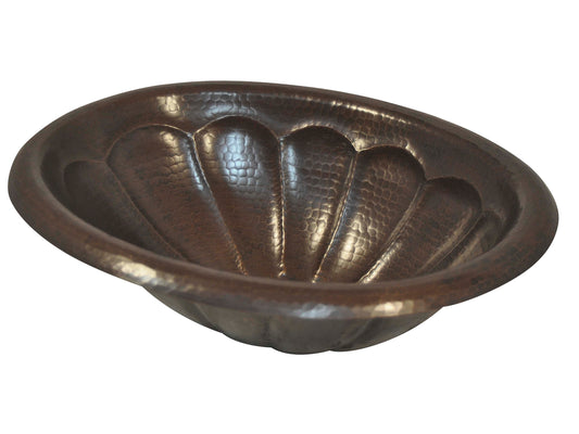 Lavabo de baño ovalado de cobre con diseño de concha de tortuga