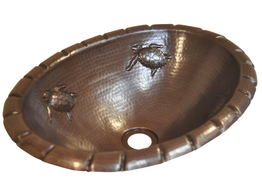 Diseño de tortugas de lavabo de baño ovalado de cobre