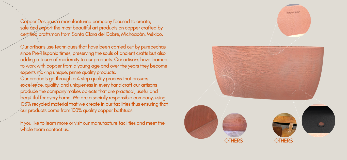 Sólo algunos baños marcan la diferencia. Una de nuestras bañeras es la que marcará la diferencia en tu baño, ya que todos nuestros diseños y acabados están realizados con la máxima calidad, su elaboración es completamente artesanal y detallada. Realza la belleza de tu baño con una de nuestras tinas de baño hermosas, resistentes, funcionales y cómodas; además de que su cuidado y mantenimiento son muy sencillos.