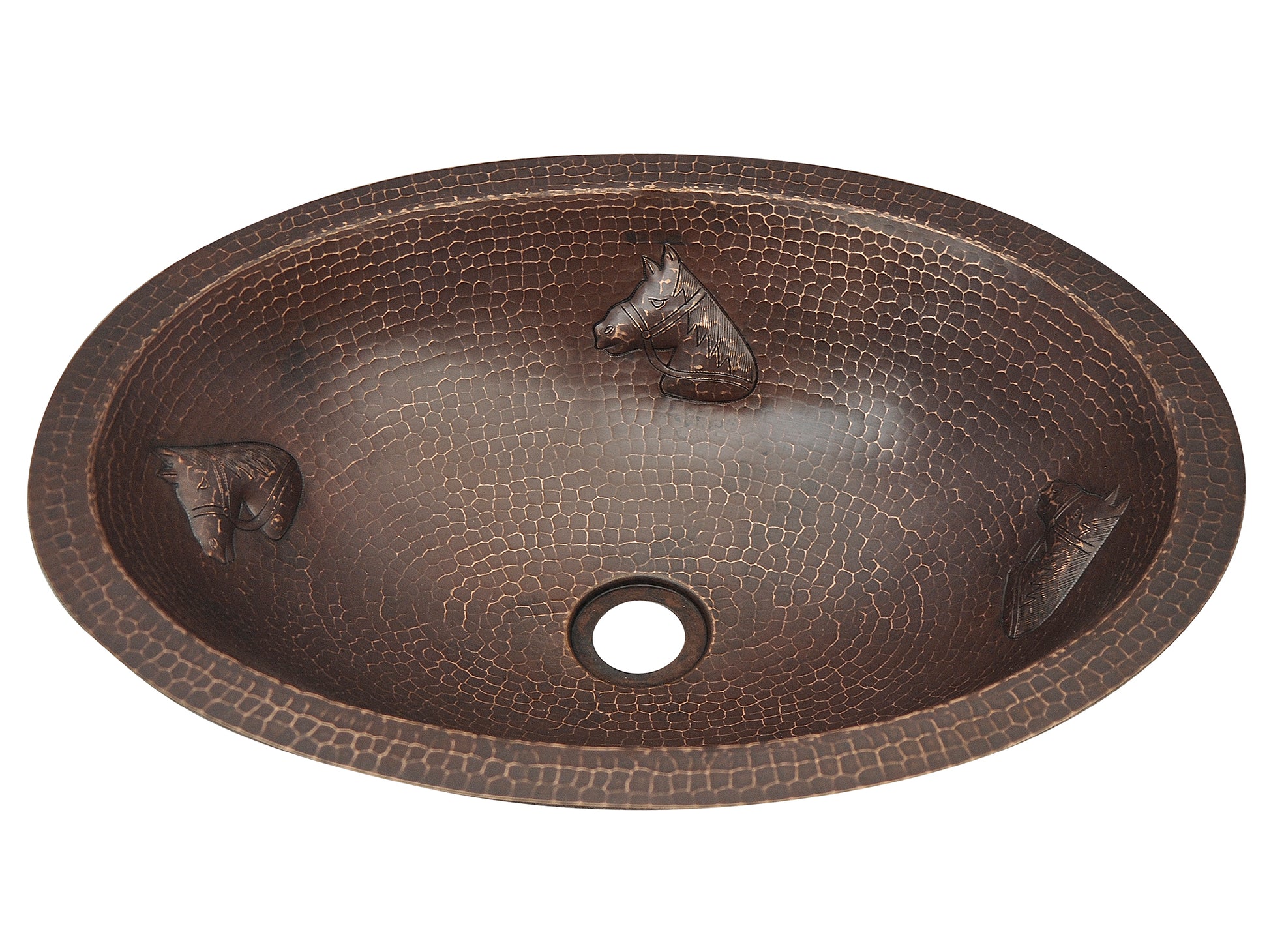 Lavabo de baño ovalado de cobre Diseño de caballos