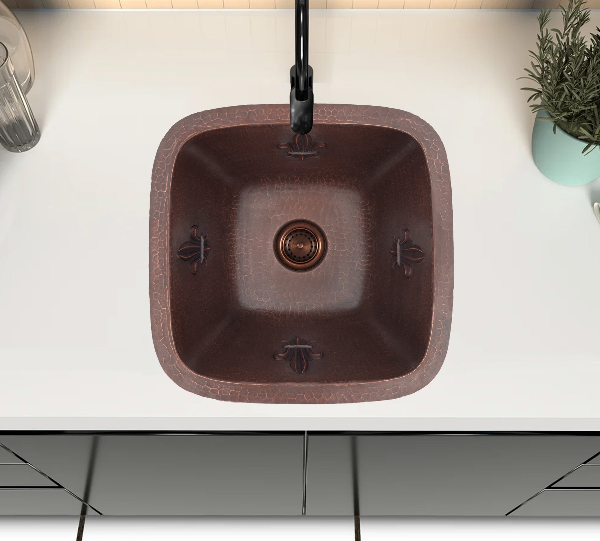 Fregadero de barra cuadrado de cobre Diseño de flor de lis